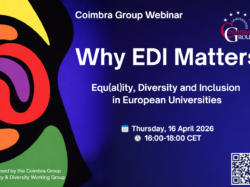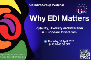 We warmly invite you to attend this webinar presenting the newly published and timely collective volume Why EDI Matters: Equ(al)ity, Diversity and Inclusion in European Universities, developed in the recent months by the Equality & Diversity Working Group of the Coimbra Group.