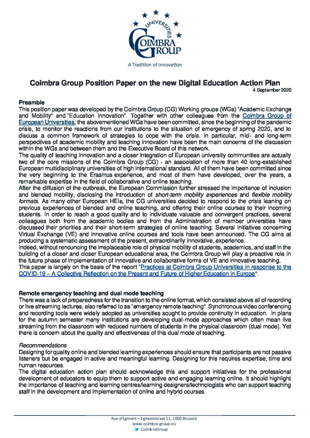 Sep2020Coimbra Group Position Paper on Digital Education Action Plan