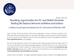 Coimbra Group Statement ahead of the EU-UK Summit of 19th May 2025 Today, 19th May, the first post-Brexit EU-UK Summit is taking place in London. In the lead-up to this Summit, both parties have expressed their desire to “reset” the EU-UK relations, and work towards a closer relationship in a series of policy areas. Amongst […]
