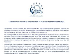 The Coimbra Group welcomes the announcement of a long-awaited political agreement between the European Commission (EC) and the United Kingdom (UK) government paving the way for UK’s association to Horizon Europe as well as to Copernicus Earth Observation programme. We are delighted that UK researchers will be able to fully participate in the Horizon Europe […]