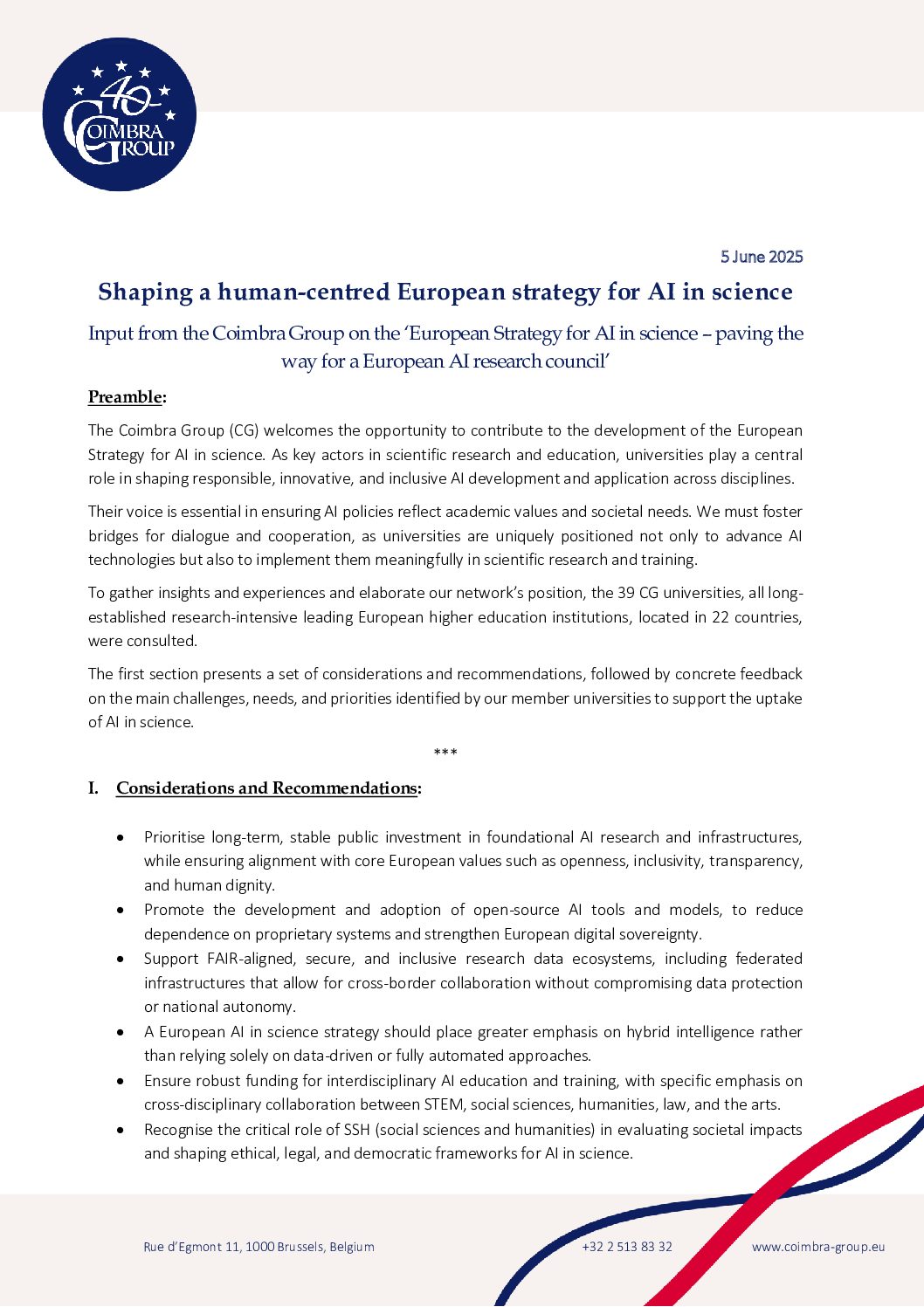 Coimbra Group Statement on the European Commission’s Strategy for AI in Science